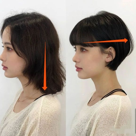 因此這些下頜線清楚、傾斜度順暢的臉形,例如瓜子臉、心形臉短頭發(fā)更具有優(yōu)點(diǎn)。