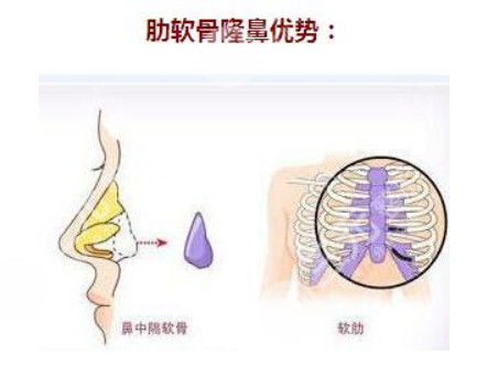 顧名思義就是利用自己肋部的軟骨組織來作為隆鼻的材料,這項手術(shù)需要先在自己胸部以下的位置切取一小部分的肋軟骨組織,而且取下來的肋軟骨也不會對自身的身體造成太大的損傷,之后再移植到鼻部,由于植入的是自身的肋骨組織,所以不會出現(xiàn)排異的反應,也不需要大量的血液供氧就可以,保持比較長的時間,而且鼻子的觸摸感也是真實自然的。