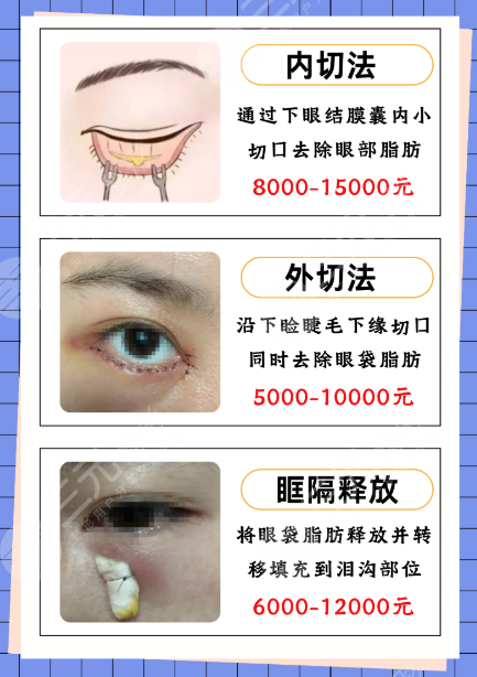 | 眶隔脂肪釋放術(shù)(去眼袋 + 填淚溝) | 8000-12000 | 術(shù)前檢查、局部麻醉、脂肪重置、縫合、術(shù)后護(hù)理 | 眼袋明顯 + 淚溝凹陷、不想額外填玻尿酸的人群 |