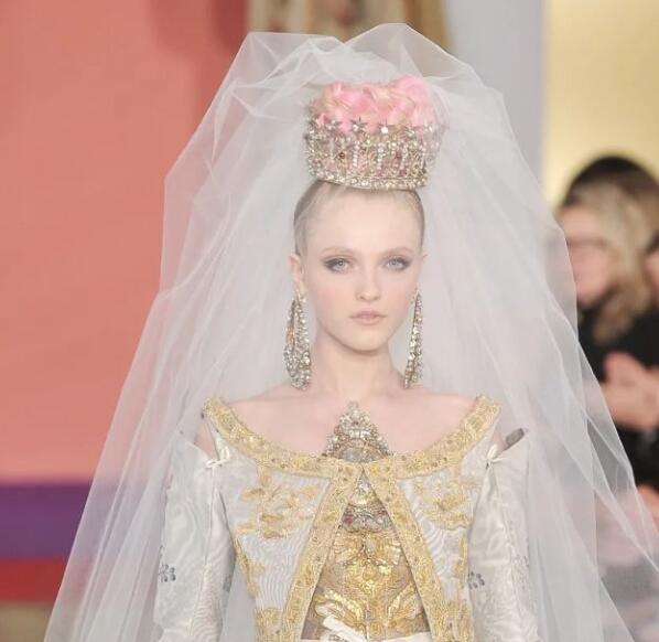 知名品牌早已破產(chǎn)倒閉的ChristianLacroix寵V仙頗深,給她領閉,連較后一次落幕也是牽著她登場。