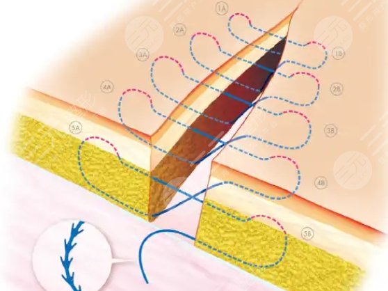 傳統(tǒng)縫合像拉窗簾,兩邊布一拽,線一系,皺褶全集中在中間。減張縫合更像拆彈,先把皮下深層組織用可吸收線做“錨釘”,讓拉力分散到周圍筋膜,表皮最后只承擔(dān)很輕的對(duì)合任務(wù)。說(shuō)白了,皮面幾乎不受力,鼓包概率自然下降。