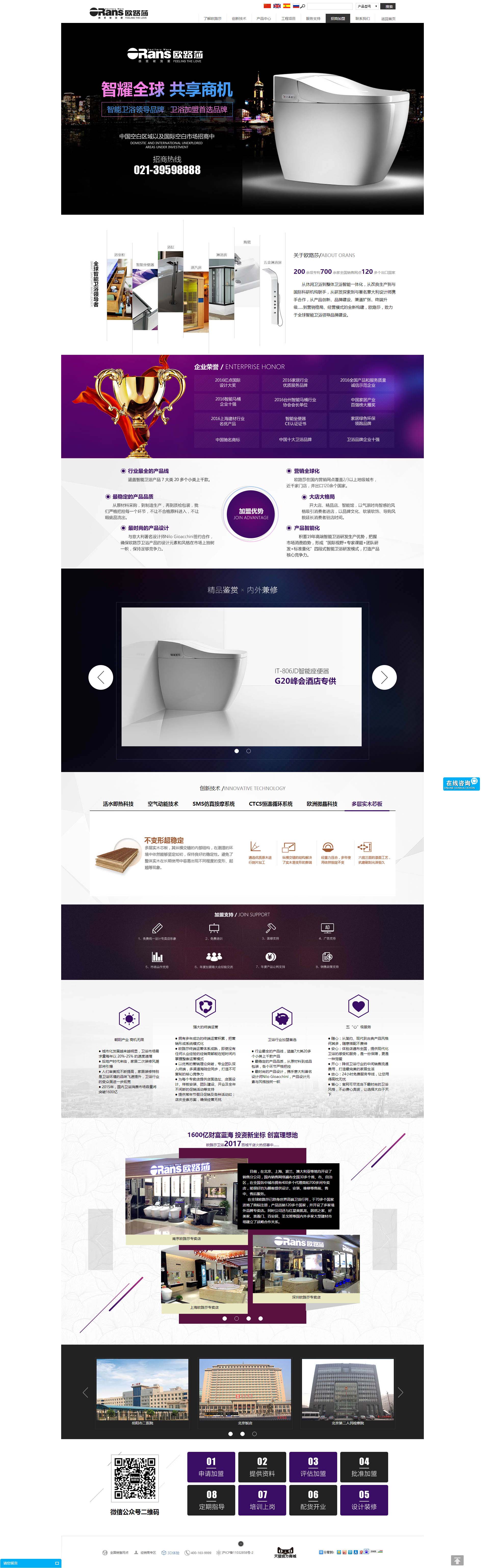歐路莎衛(wèi)浴始創(chuàng)于1998年,是一家專(zhuān)注于智能衛(wèi)浴研產(chǎn)銷(xiāo)的科技型自主品牌企業(yè),是中國(guó)最早從事整體衛(wèi)浴智能化打造的品牌,先后成為按摩浴缸、桑拿房、淋浴房、智能座便器行業(yè)標(biāo)準(zhǔn)的起草制定單位,獲得“中國(guó)馳名商標(biāo)”、“中國(guó)十大衛(wèi)浴品牌”、“衛(wèi)浴品牌企業(yè)十強(qiáng)”等百余項(xiàng)殊榮,擁有各種產(chǎn)品專(zhuān)利200余項(xiàng),全國(guó)銷(xiāo)售網(wǎng)點(diǎn)700余家,出口全球120多個(gè)國(guó)家,并一直堅(jiān)持走自主研發(fā)、品牌創(chuàng)新發(fā)展的道路。