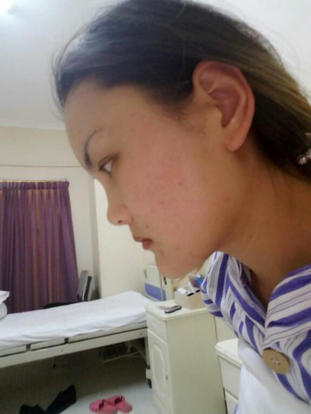 我的臉有點(diǎn)癟,整體看起來也不是很美觀,一直想要做填充,先前試過注玻尿酸,但是沒有什么用,很快就吸收了,后來才在考慮做自體脂肪面部填充,在我看來這個(gè)就是一舉兩得的事情,不僅可以減少腿部脂肪,還能讓自己臉看起來慢慢的膠原蛋白。下面我就為大家放我做了手術(shù)第(一)天的照片吧,很明X可以看出我的臉很飽滿,但是不太自然。