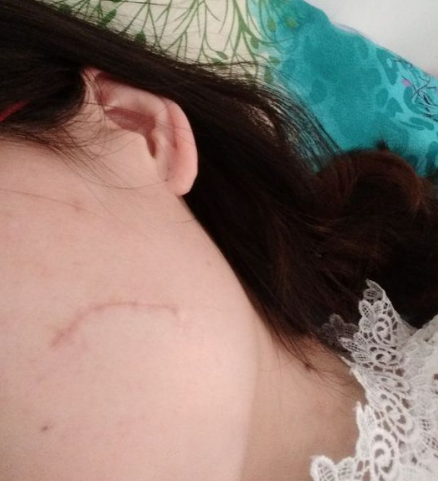 過(guò)去大半個(gè)月了?,F(xiàn)在的疤痕雖然紅紅的,但對(duì)比之前的照片是好很多了,疤痕在慢慢的變小。