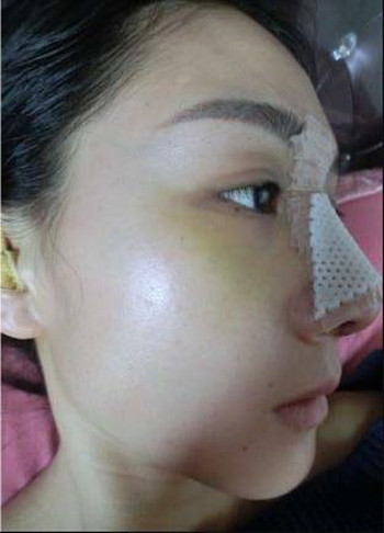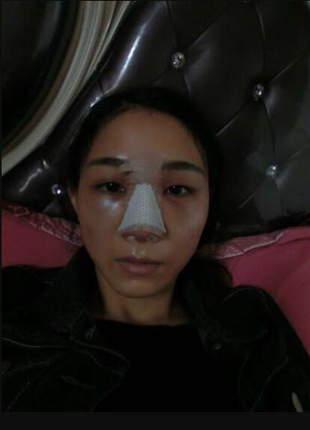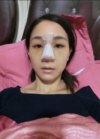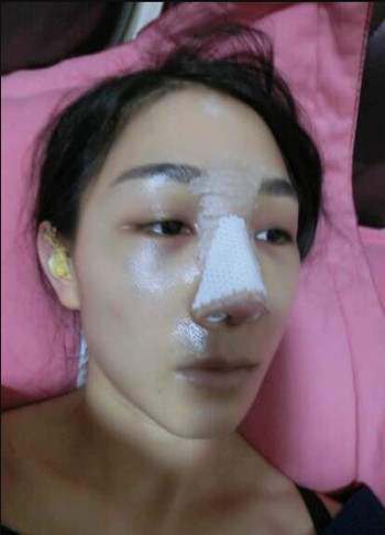 我手術(shù)時間安排在3月1號,取的是耳軟骨,手術(shù)的時候打的全麻,所以手術(shù)費(fèi)用比一般的貴一些,畢竟我是一個怕痛的人。現(xiàn)在給大家看看我手術(shù)后的第(一)天的情況,做了隆鼻整形手術(shù),受影響做大的就是眼睛,可以很直觀的看出來,我的眼睛腫的不像樣了, 周圍也泛黃,不過醫(yī)生說這些都是正常的教我不要擔(dān)心。