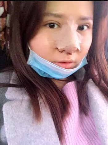 手術(shù)后的第九天,鼻子去拆線了,好好的洗臉洗頭,悄悄化了點(diǎn)妝,哈哈哈,我的臉比較圓,胖嘟嘟的!