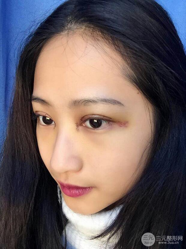 現(xiàn)在來匯報一下我的雙眼皮情況!現(xiàn)在的眼睛有點腫!對于雙眼皮的形狀我還是較為滿意的!現(xiàn)在很好還是不要化妝哦!可以方便眼睛更好的恢復(fù)哦~