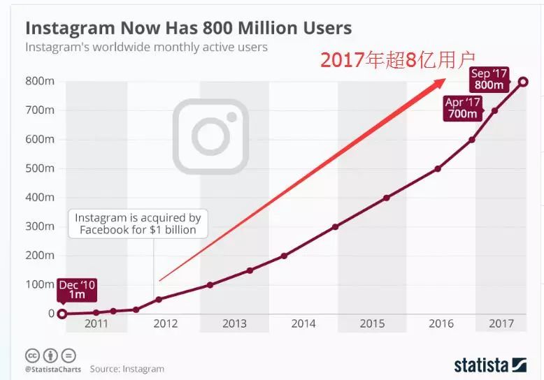 2017年9月,Instagram的月度活躍用戶數(shù)量突破了8億!