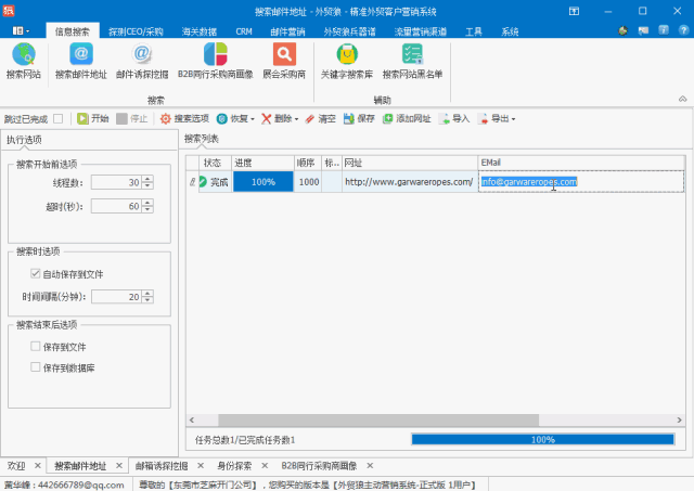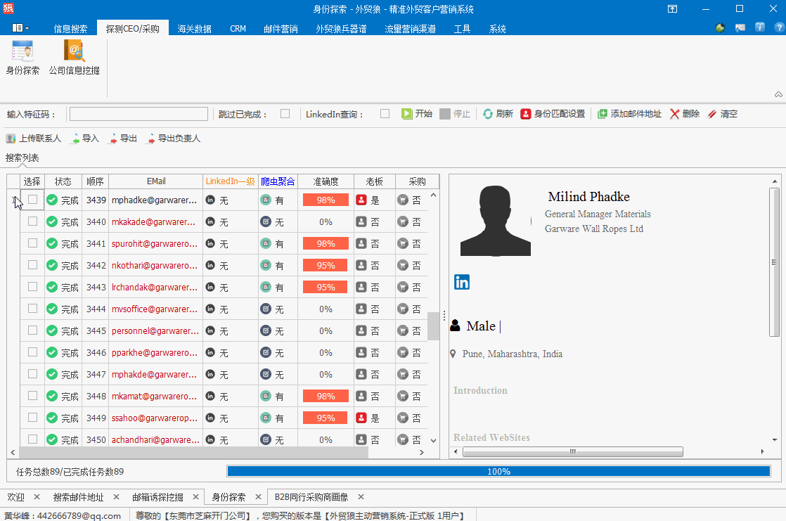 利用外貿(mào)狼的深度挖掘功能和搜索引擎爬蟲技術(shù),快速挖掘出企業(yè)的89個企業(yè)郵箱。