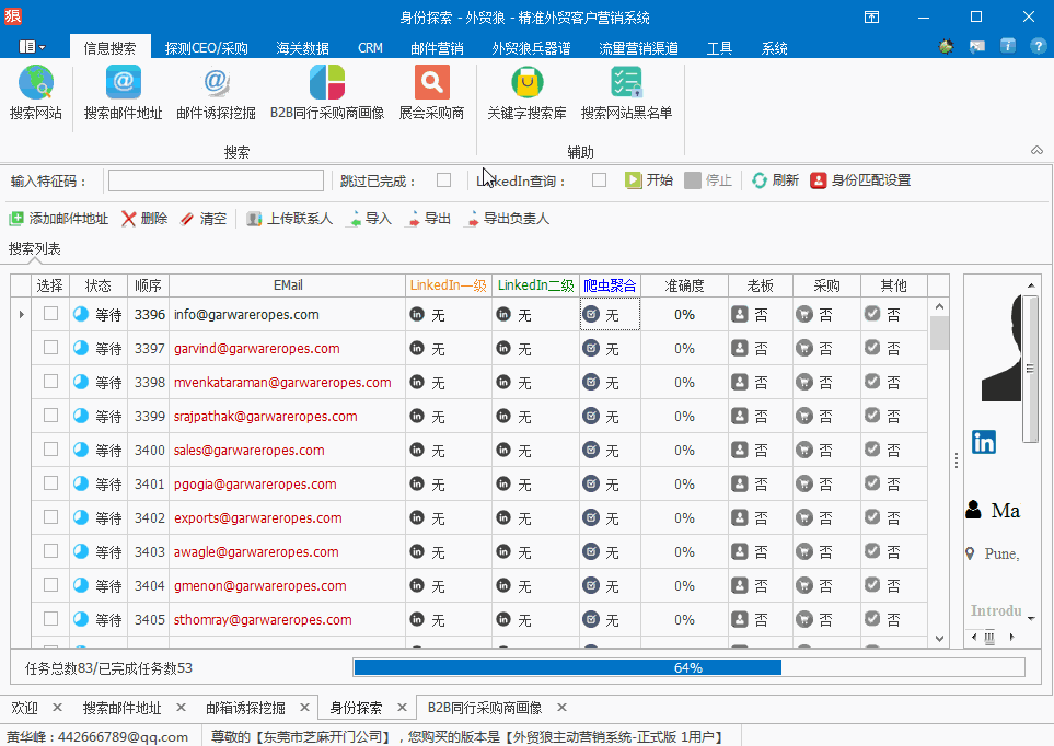 用外貿(mào)狼找到這個網(wǎng)站的一個公開的郵箱:info@garwareropes.com作為線索來拋磚引玉。