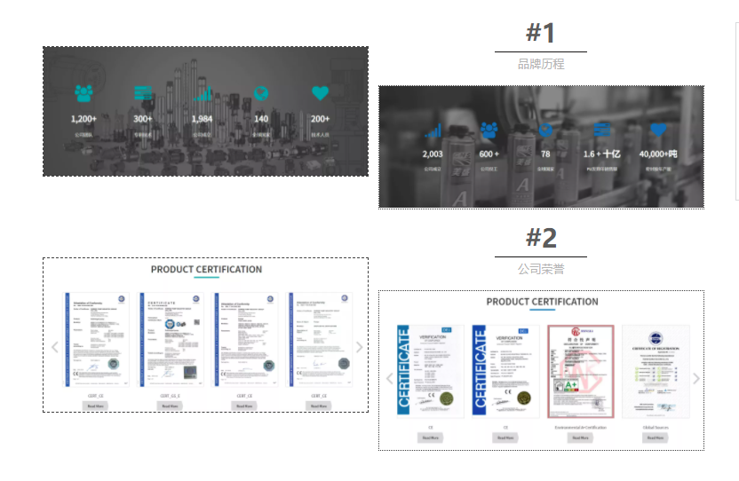 展示出企業(yè)的成立時間、發(fā)展歷程、文化理念、榮獲的專利及榮譽墻、產(chǎn)品與服務(wù)等等,通過對外展示企業(yè)專業(yè)度與客戶建立信任感,更能吸引住潛在客戶