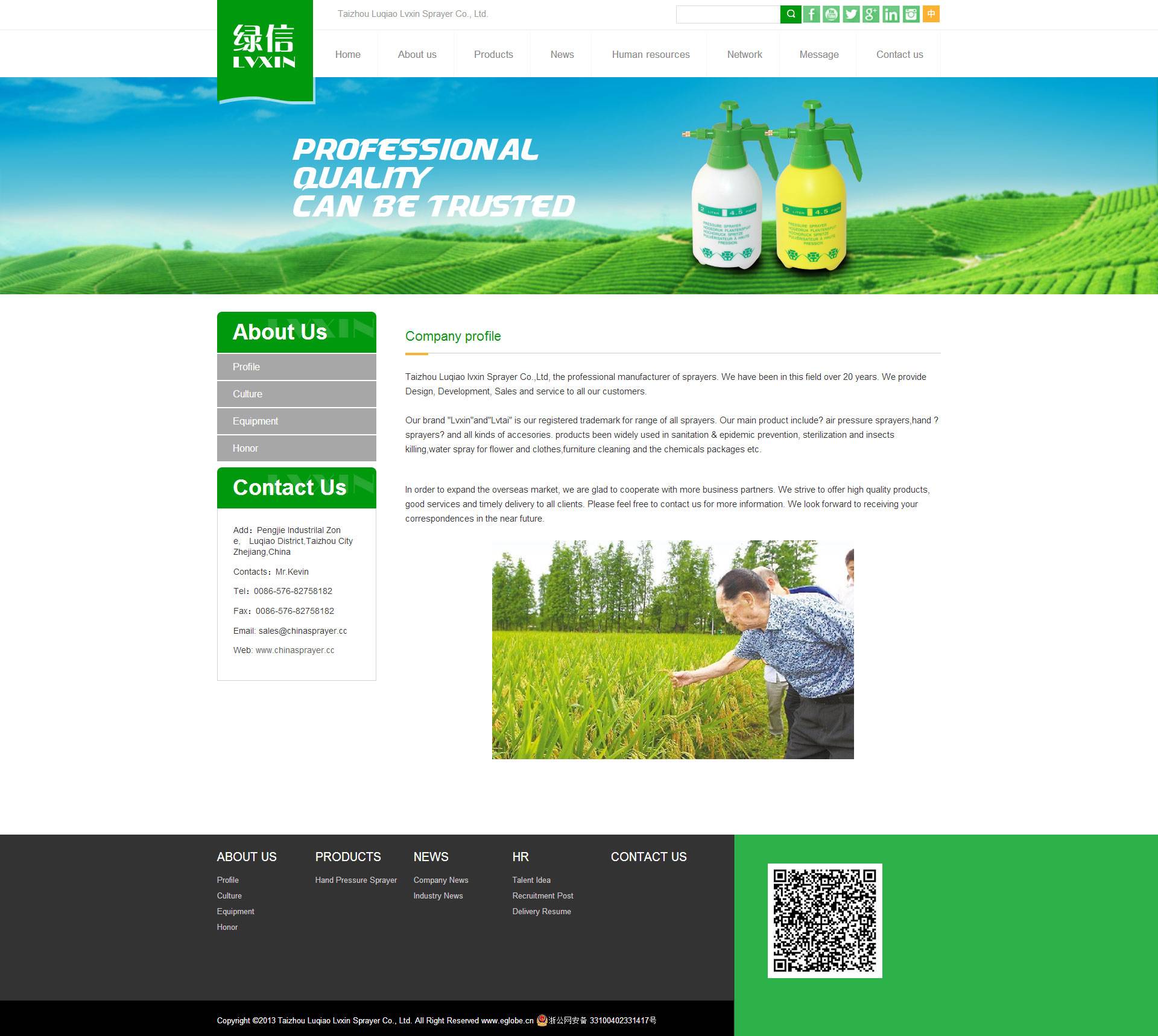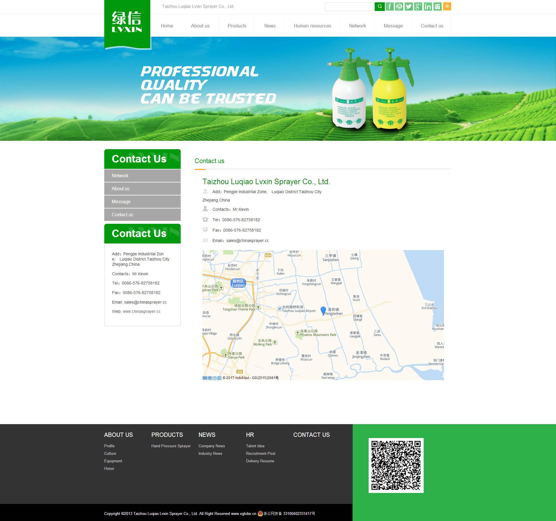 臺(tái)州市路橋綠泰噴霧器廠(普通合伙)前身是臺(tái)州市路橋仙達(dá)金屬塑料廠,該廠成立于1992年,位于中國(guó)最大的噴霧器生產(chǎn)基地—-臺(tái)州,本廠秉承“顧客至上,質(zhì)量至上”的經(jīng)營(yíng)理念,堅(jiān)持“客戶第一”的原則,不斷開(kāi)拓創(chuàng)新。綠泰牌噴霧器的產(chǎn)品質(zhì)量一直是國(guó)內(nèi)同行中的佼佼者。憑借過(guò)硬的產(chǎn)品質(zhì)量以及周到的服務(wù),產(chǎn)品遠(yuǎn)銷國(guó)內(nèi)外。愿繼續(xù)與廣大客商開(kāi)展并保持良好的合作關(guān)系,竭誠(chéng)向新老客戶提供滿意的商品和服務(wù),愿與社會(huì)各界攜手前行,共創(chuàng)美好未來(lái)!